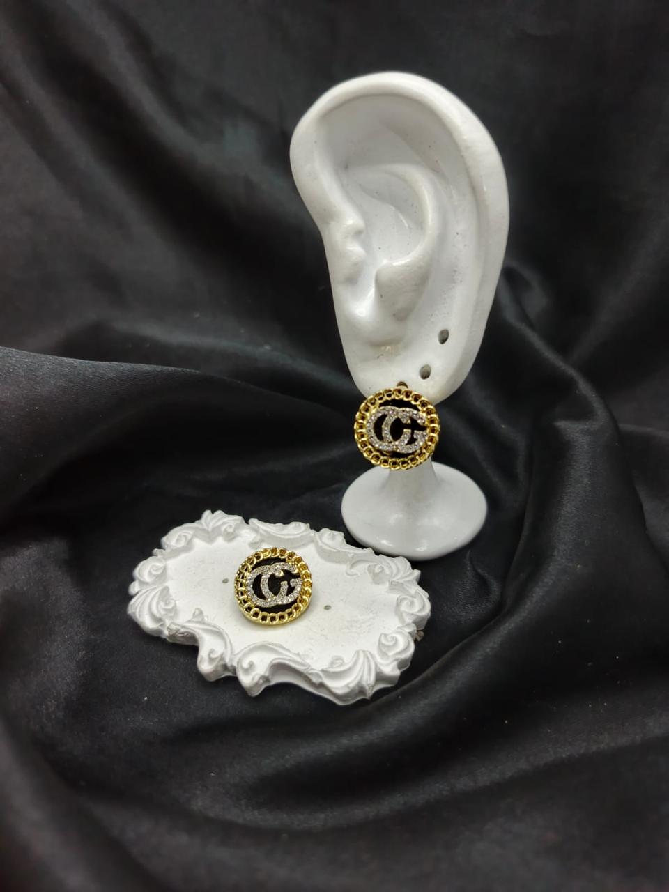Design: Round stud earrings with "CG" monogram